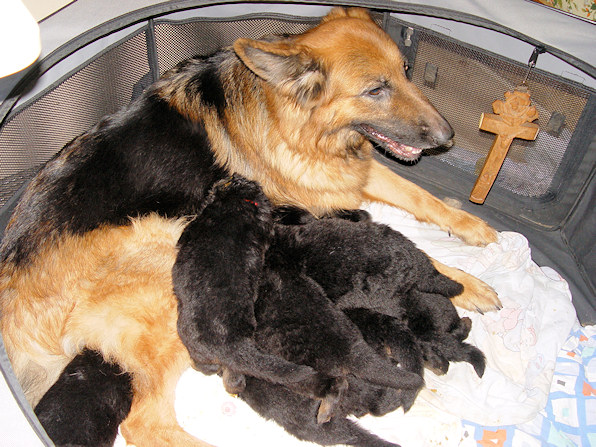 und noch mal füttern.... dann gehts ab ins Hundehaus!